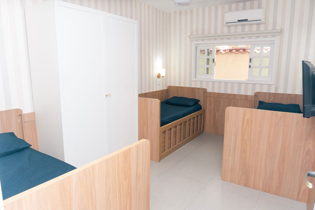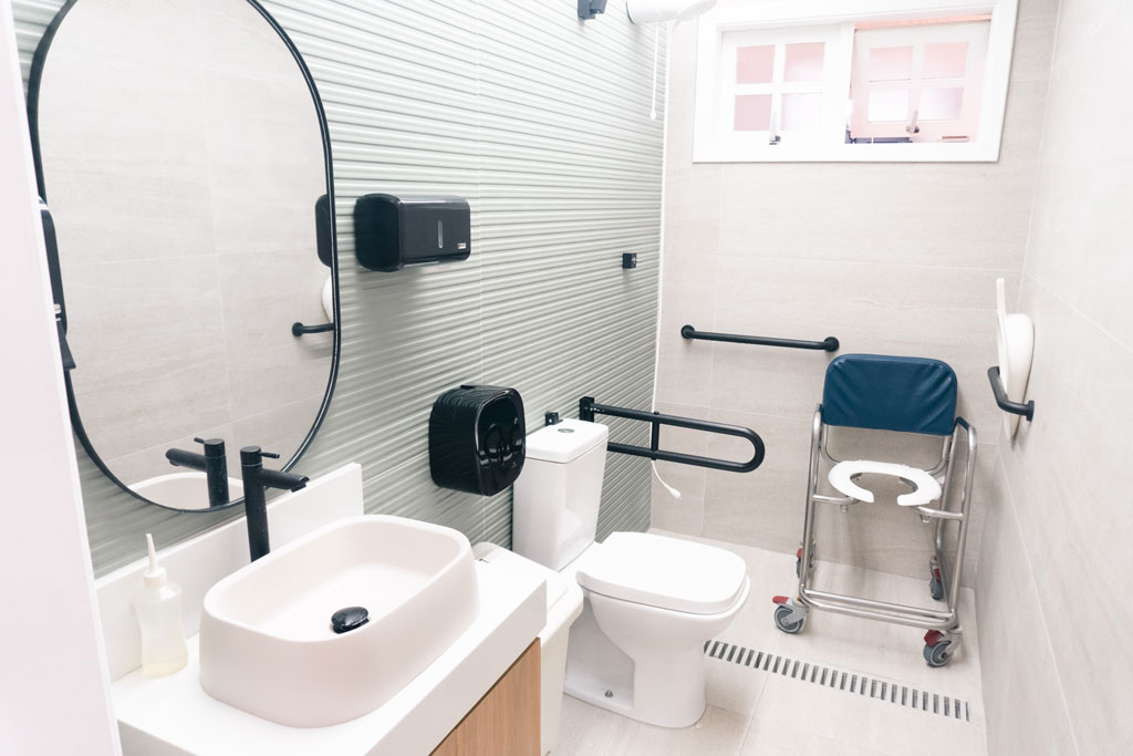 Nossas instalações possuem toda a infraestrutura necessária para oferecer conforto e segurança ao hóspede, através de corrimão por toda a casa térrea, adaptações ás condições físicas em todos ambientes, principalmente nos sanitários, além de possuir excelente ventilação e iluminação.